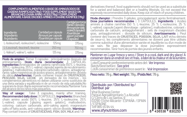 BCAA’s Pure de SFY Nutrition ofrece un aporte extra de los aminoácidos presentes en las proteínas enfocados al crecimiento y desarrollo muscular. Con el mejor ratio posible, 2:1:1, aumenta la cantidad de leucina, isoleucina y valina en tu día a día. Convierte tu batido de proteína pos-entrenamiento en una espectacular bomba anabólica combinándolo con la toma de dos cápsulas tras el entrenamiento.